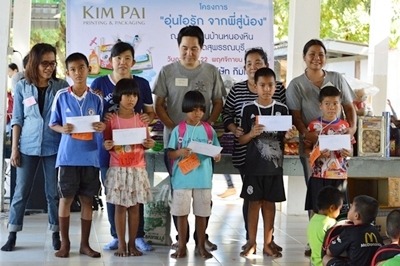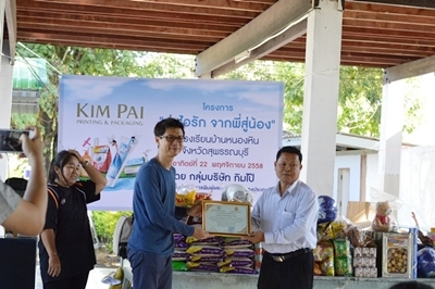 เมื่อวันที่ 22 พฤศจิกายน 2558 กลุ่มบริษัทกิมไป๊ โดยห้างหุ้นส่วนจำกัด เหรียญทองการพิมพ์ และพนักงาน ได้ร่วมกันทำกิจกรรมเพื่อสังคม “อุ่นไอรักจากพี่สู่น้อง” ขึ้นที่โรงเรียนบ้านหนองหิน อ.เดิมบางนางบวช จ.สุพรรณบุรี โดยมุ่งเน้นกิจกรรมที่สร้างโอกาสทางการศึกษาและเพิ่มทักษะการเรียนรู้ในรูปแบบต่างๆ ให้กับนักเรียน เช่น การสร้างโรงเพาะเห็ดนางฟ้า การสร้างระบบกักเก็บน้ำ การสอนปลูกผักสวนครัว การสอนใช้อินเตอร์เน็ต นอกจากนี้ยังได้มอบทุนการศึกษา สิ่งของอุปโภคบริโภค และอุปกรณ์เครื่องเขียนให้กับนักเรียน โดยมี นายธง กาฬภักดี นายกเทศมนตรีตำบลหนองกระทุ่ม เป็นผู้รับมอบของทั้งหมด
